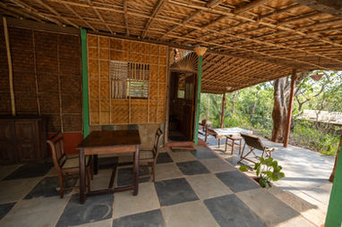 Built over 12 acres of forest, the Khaama Kethna eco-village has nineteen cottages, three beautiful outdoor yoga shalas, and plenty of commune yet peaceful areas.